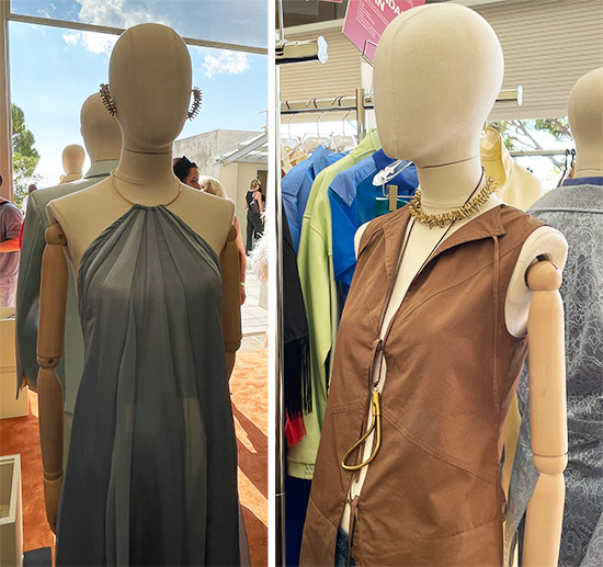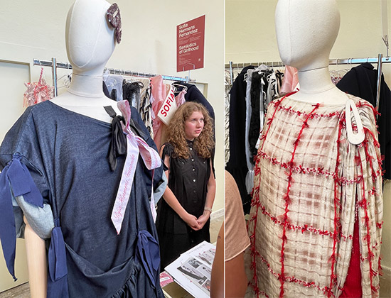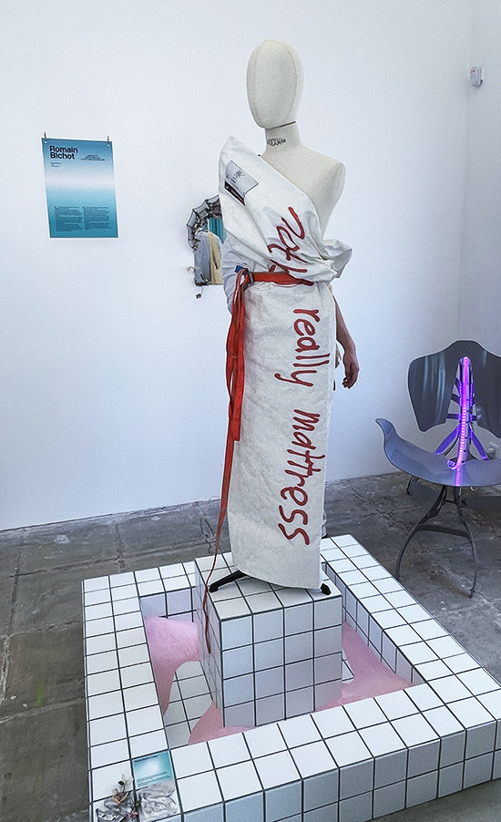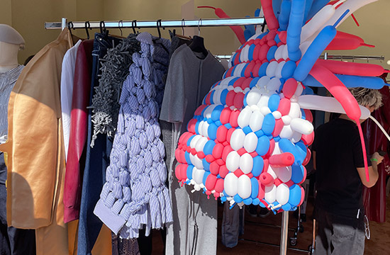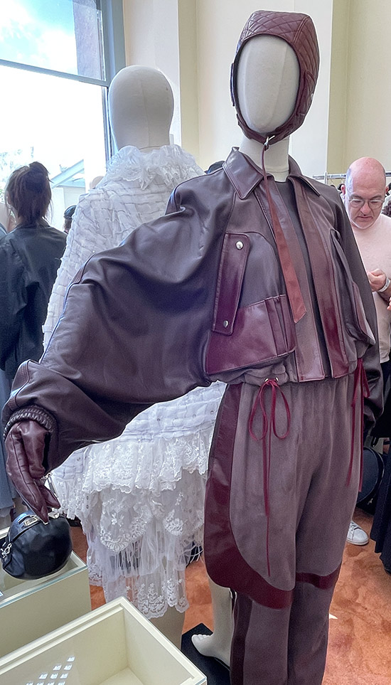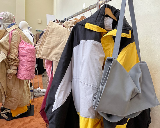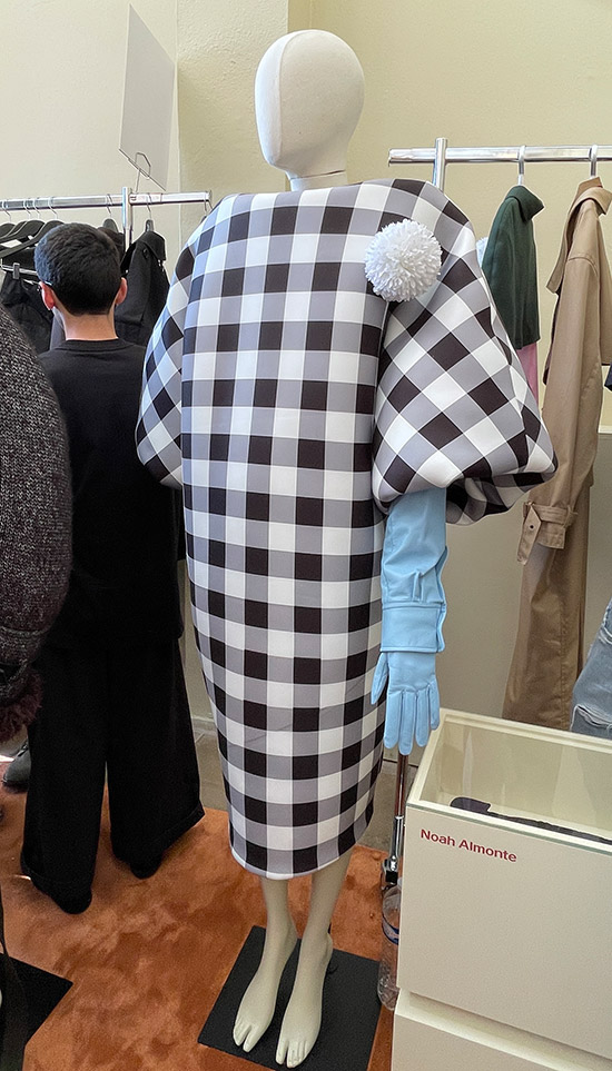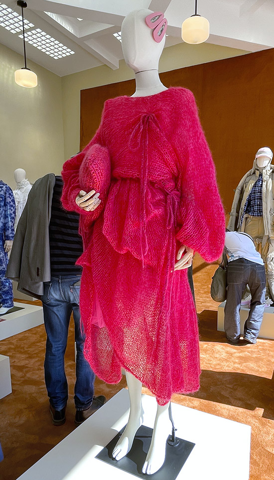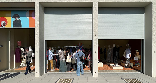 Es ist ein wesentlicher Aspekt des Wettbewerbs der jungen Designer und Designerinnen, ihre Arbeit dem interessierten Publikum selbst anhand ihrer Kollektion vorzustellen und zu erklären. Man kann die Beispiele von Nahem betrachten, befühlen und besprechen, hier wird quasi die Brücke geschlagen zwischen dem Anliegen der jungen Gestalter und dem interessierten Publikum, sei es den Profis oder den Konsumenten. Das ist eine wichtige Einrichtung des Festivals, identifikationsstiftend und erkenntnisgerichtet zugleich, der Ort, wo die Nähe zur Kunst und Kreativität auch grundlegend kulturstiftend ist. Bevor sie dann der Exklusivität und dem luxuriösen Showbusiness geopfert wird: schon im Folgejahr bekommt der Gewinner des Wettbewerbs eine offizielle Schau in der Pariser Fashionweek gesponsert, und da ist es dann vorbei mit der Bodenhaftung des kreativen Tuns. Dieser Veranstaltungsteil ist darum sehr beliebt beim interessierten Publikum und bei den Profis, die hier kaufen, Kontakte knüpfen und Qualitäten begutachten – entsprechend voll ist die auf gedrängtem Raum stattfindende Präsentation immer. Mit dem Ortswechsel dieses Jahr hat sich daran nichts geändert, aber der kann schon auch als Zeichen eines veränderten Focus‘ des Festivals verstanden werden.