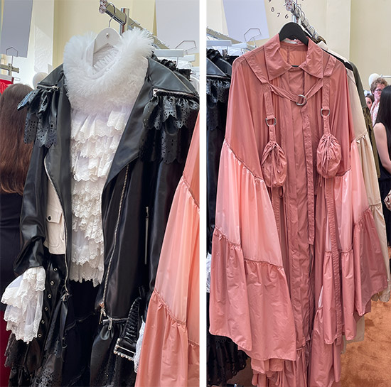 Und wie stets, sind die gestalterischen Ansätze so verschieden wie nur irgendwas, einheitliche Standpunkte sind, jenseits der inzwischen selbstverständlichen Nachhaltigkeit, kaum zu finden. Witzige Originalität, romantisierende Nostalgie und pragmatischer Streetstyle beziehungsweise casual Businesslook stehen gleichberechtigt nebeneinander und demonstrieren eine Pluralität, die unseren freien Zeitgeist in alle Richtungen auslotet. Dabei bildet, beispielsweise im Gegensatz zur Berliner Blase, die ästhetische Grundlage von Modegestaltung noch immer den leitenden Focus und nicht die Bedeutung oder Botschaften mit ihren symbolischen Codes, ganz ohne zwanghafte Ausrichtungen. Auch nationale Orientierungen sind höchstens schwach ausgebildet und spielen im Kontext nur inspirative Rollen. Hochwertige Schneiderkunst wird vorausgesetzt – da ist das gute Handwerk der französischen Haute Coutre noch immer ein entscheidendes Kriterium und wird bei den Jurys durch nichts anderes abgelöst.