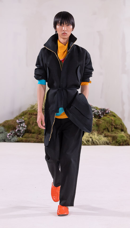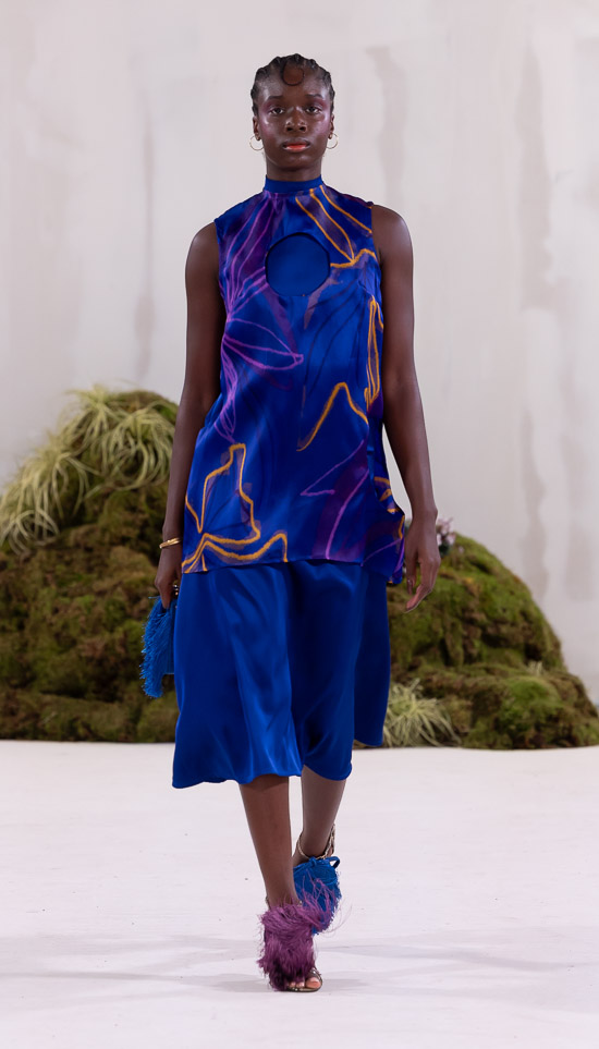 Es ist ein Feuerwerk der Lebensfreude, was sogar die ansonsten eher unberührte Riege der dokumentierenden Fotografen begeistert hat. Die Kollektion von Orange Culture kommt diese Saison fast ungebrochen farbenfroh und optimistisch daher, nachdem Adebayo Oke-Lawals vorausgehende Schau in Berlin noch von traurigen Privatereignissen beeinflusst war.