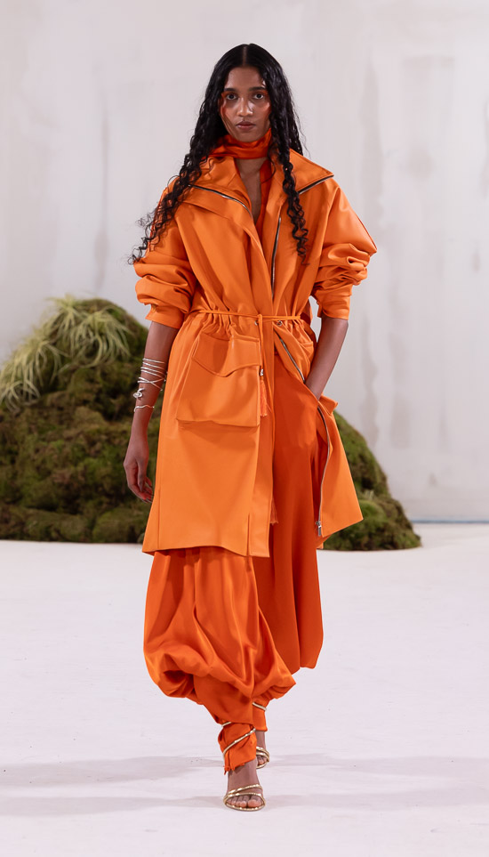 Hier auf der Berliner Fashionweek hat bereits das Label Palmwine Icecream aus Ghana mit Life Moodboard und Muse einen wichtigen und gefeierten afrikanischen Akzent gesetzt, Orange Culture (Lagos, Nigeria) ergänzt diesen Ansatz nun auf eigene Weise, mit ebenso viel Feeling und ebenso erfolgreich.