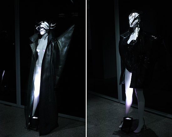 Letztlich hat jedes teilnehmende Label eine eigene Idee zur Konstellation einer Installation entwickelt, die zum jeweiligen Selbstverständnis des Modemachens passt, mal erscheint das dann spektakulär, mal weniger. Das ist nicht nur eine Frage, wie man jenseits der Mode auch kreativ denken und konzipieren kann. Es erfordert zuerst eine bewußte, eher konkrete Lifestyle-Philosophie für die eigene Mode, die eine fantasievollere, anschaulichere Lebenswelt im Kopf des Designers voraussetzt, als viele sich das gemeinhin vergegenwärtigen. Diesen Abstraktionsschritt haben früher Werbeagenturen mit Werbespots und Werbebildern übernommen. Hier macht das das Label selber.